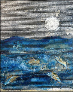 The Voyage, 8 x 8 in. mixed media on wood. Unframed. $150 . $200 framed.